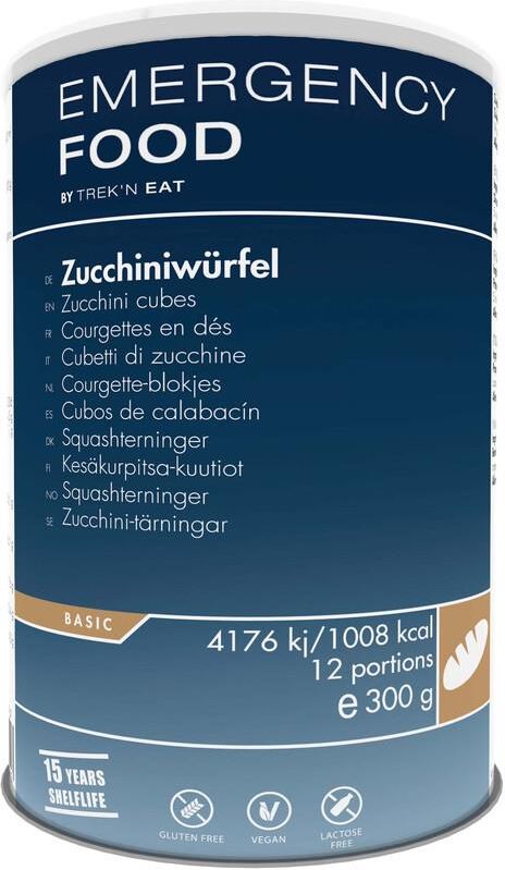 Cukinia w kostkach TREK'N EAT EMERGENCY FOOD Cukinia w kostkach marki Trek'n Eatto to produkt, który pozwoli Ci na przygotowanie w warunkach turystycznych zupy warzywnej, gulaszu czy też sałatki.