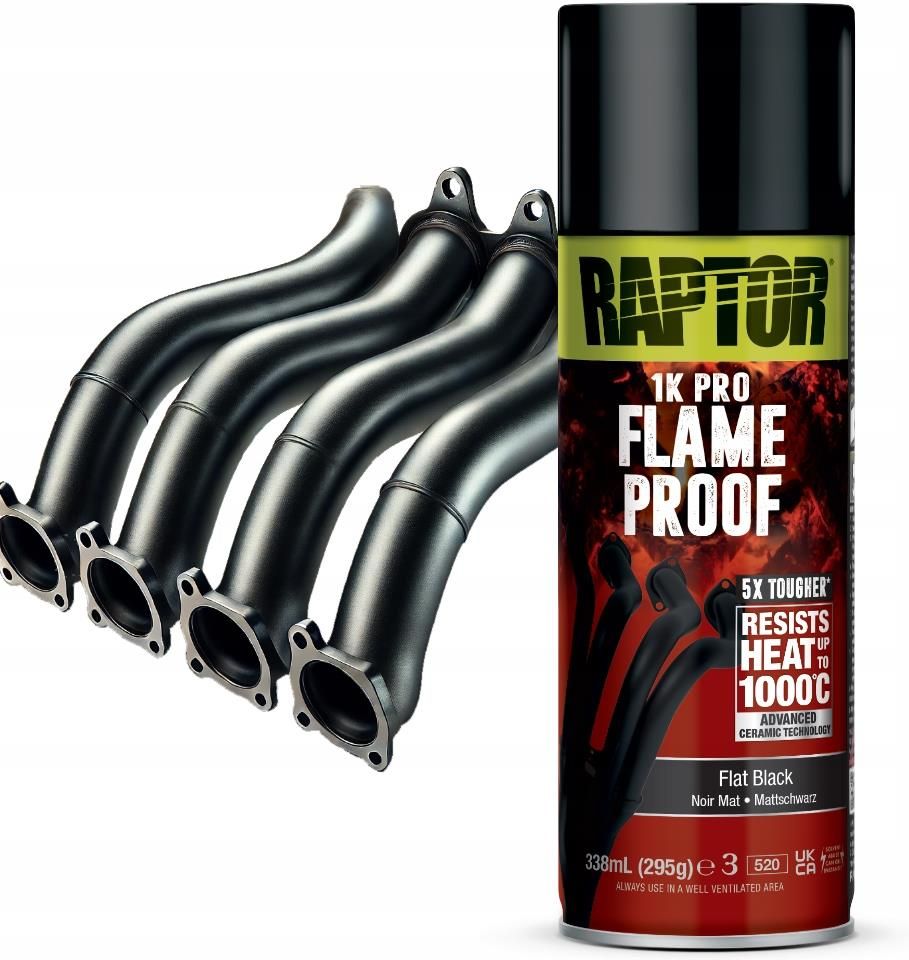 RAPTOR U-POL LAKIER SPRAY ŻAROODPORNY 1000°C CZARNY MAT RAPTOR Ognioodporny Lakier – Idealna Ochrona do 1000°C dla Kolektorów Wydechowych, Układów Wydechowych i Nie Tylko! Profesjonalny lakier ognioodporny RAPTOR to zaawansowane rozwiązanie, idealne do stosowania na kolektorach wydechowych, końcówkach wydechu, układach wydechowych oraz innych powierzchniach wymagających ochrony przed ekstremalnie wysokimi temperaturami. Oparty na technologii ceramicznej oraz pigmentach odpornych na temperaturę, lakier RAPTOR wytrzymuje do 1000°C i jest aż 5 razy bardziej wytrzymały niż standardowe lakiery. Po pełnym utwardzeniu zapewnia doskonałą ochronę przed wysoką temperaturą, olejem oraz innymi płynami samochodowymi, a jego gładkie wykończenie gwarantuje doskonałą przyczepność bez pęcherzy, łuszczenia, pękania ani odprysków. Kluczowe właściwości Zaawansowana technologia ceramiczna – odporność na temperatury do 1000°C Ochrona przed olejem, płynami samochodowymi i wysoką temperaturą Doskonała przyczepność – brak pęcherzy, łuszczenia się, pękania i odprysków Łatwy w użyciu – szybko schnie i zapewnia gładkie wykończenie 5 razy wytrzymalszy niż zwykłe lakiery Dysza punktowa zapobiegająca zatykaniu – idealna do powierzchni 3D Nadaje się do wszystkich rodzajów zagruntowanych metali, w tym stali i stopów Lakier RAPTOR Ognioodporny to najlepszy wybór do ochrony metalowych powierzchni Twojego pojazdu przed ekstremalnymi warunkami. Zamów już dziś i zapewnij swojemu pojazdowi długotrwałą ochronę przed wysoką temperaturą! Informacje o produkcie podane są zgodnie z naszą najlepszą wiedzą. Przed użyciem zaleca się przeprowadzenie próby natryskowej w celu oceny zgodności produktu z oczekiwaniami. Decyzja o dalszym stosowaniu lakieru należy wyłącznie do użytkownika. Sprzedawca pełni rolę pośrednika i nie ponosi odpowiedzialności za końcowy efekt uzyskany przez kupującego. Aby uzyskać pełną wytrzymałość powłoki, wygrzej malowaną powierzchnię. Stopniowo podnieś temperaturę do docelowej wartości – to klucz do maksymalnej trwałości i odporności lakieru.