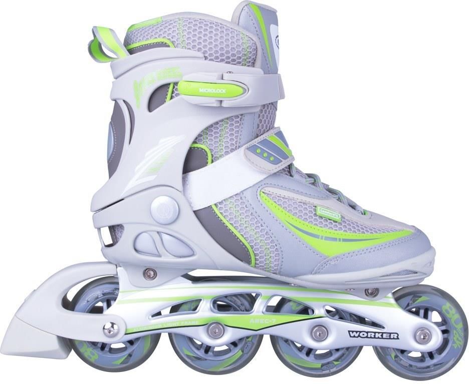Łyżworolki WORKER Farila to nowoczesne rolki przeznaczone do jazdy rekreacyjnej. Lekka, aluminiowa rama, łożyska ABEC 7 Chrome oraz kółka wykonane z gumy poliuretanowej, zapewniają doskonałe właściwości jezdne. Dzięki większemu rozmiarowi kółek - 80 mm, rolki sprawdzą się również do jazdy fitness. …