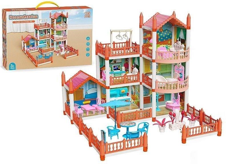 domek 2 piętrowy dla lalek 53x51,5x47cm, z wyposażeniem i ogrodzeniem; 45,5x30x11cm, Box EAN: 5901271625907