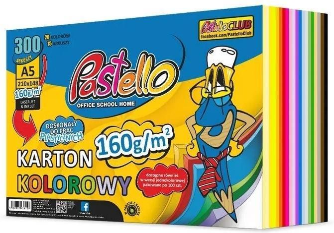 Alfa Pastello Karton Kolorowy A5 160G 20 Kolorów 300 Arkuszy Buk