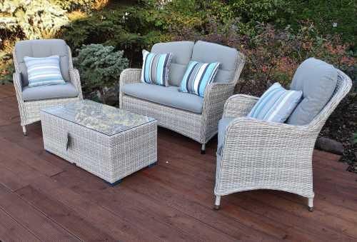 Wszystkie wybarwienia kompletu można zobaczyć na ekspozycji sklepu stacjonarnego. BelGiardino - meble ogrodowe z technorattanuDzięki zdobytemu na przestrzeni lat doświadczeniu jesteśmy w stanie dostarczyć główne elementy aranżacji ogrodów, tarasów oraz balkonów. Z roku na rok staramy się dopracowywać naszą kolekcję, odpowiadając na potrzeby klientów i zmieniające się trendy. Polecamy wysokiej jakości meble ogrodowe z technorattanu, które w każdej chwili dostosować można do aktualnych potrzeb. Skład kompletu jeden stolik prostokątny z blatem z hartowanego szkła o grubości 5mm; dwa fotele z poduszkami w kolorze SZARY i o grubości 10cm; jedna sofa z poduszkami w kolorze SZARY i o grubości 10cm; opcjonalny dodatkowy pokrowiec w kolorze GRAFIT. Zalety kompletu odporność na działanie promieni UV; odporność na warunki atmosferyczne; elegancka plecionka; niepowtarzalne wzornictwo; wzmocniona konstrukcja stelaża; rama aluminiowa, malowana proszkowo; dodatkowe wzmocnienia zapewniają długotrwałą wygodę i komfort użytkowania mebli ogrodowych. Materiały i wykonanieKomplet mebli ogrodowych ARES marki BelGiardino jest wykonany z OKRĄGŁEGO oraz PÓŁOKRĄGŁEGO technorattanu w kolorze JASNY SZARY i o grubości 6mm, który jest doskonałą imitacją naturalnego rattanu. lekkie stelaże są wykonane z aluminium malowanego proszkowo; konstrukcja mebli ogrodowych jest ręcznie opleciona wspomnianym rattanem PE, co potęguje efekt naturalności; technorattan cechuje się wyjątkową lekkością oraz wytrzymałością na warunki atmosferyczne, takie jak deszcz i śnieg; dzięki zastosowaniu nowego, syntetycznego materiału uzyskano doskonałą jakość oraz wytrzymałość; w komplecie znajdują się poduszki, które wytworzono z wodoodpornego materiału. Zapewniają one komfortowe użytkowanie zestawu; wszystkie pokrowce na poduszki są zaimpregnowane, dzięki czemu są odporne na warunki atmosferyczne oraz poplamienia, dzięki czemu przypadkowo wylane napoje nie stanowią już żadnego problemu; zastosowany zamek błyskawiczny daje możliwość szybkiego zdjęcia i wyczyszczenia każdej poszewki. UwagaW wyniku działania promieni słonecznych oraz wysokich temperatur może występować efekt "falującego" rattanu na blacie stołu. Dzieje się tak z powodu skupiania energii słonecznej przez szybę. Efekt ten jest odwracalny - obniżenie temperatury skutkuje natychmiastowym powrotem do pierwotnego stanu. Zalecamy ustawić zestaw pod zadaszeniem lub w zacienionym miejscu.
