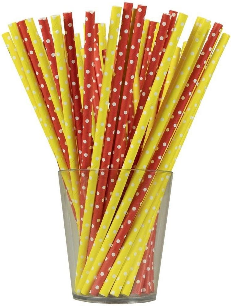 Papierowe słomki w kolorze czerwonym i żółtym w białe kropeczki. Słomki nie zmieniają smaku napoju. 12 sztuk w opakowaniu. Produkt posiada certyfikat FSC.