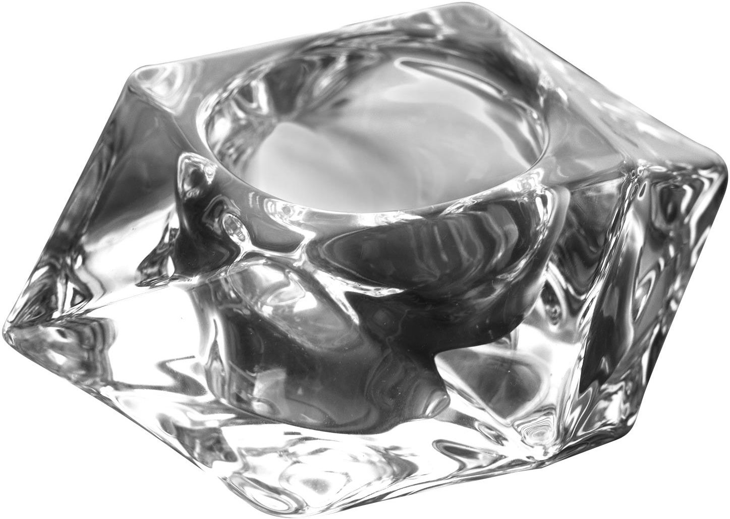 Uroczy świecznik szklany o niewielkich rozmiarach. Świecznik można zastosować ze świeczką typu t-light. Niewielki szklany świecznik pomoże udekorować stół nadając mu wyniosłości i elegancji. Rozweseli półki czy komody lub ławy. Jest to nieodłączny element wyposażenia. Powinien znaleźć się w każdym domu. Świecznik szklany posłuży przy każdej okazji - czy to spotkanie z bliskimi czy większa uroczystość. Oprawa imprezy zastosowaniem świecznika stanie się bardziej wymowna, a wnętrze nabierze przytulnego charakteru i miłej atmosfery. Taca i świeczki widoczne na zdjęciach nie stanowią kompletu ze świecznikiem. Służą celom dekoracji.