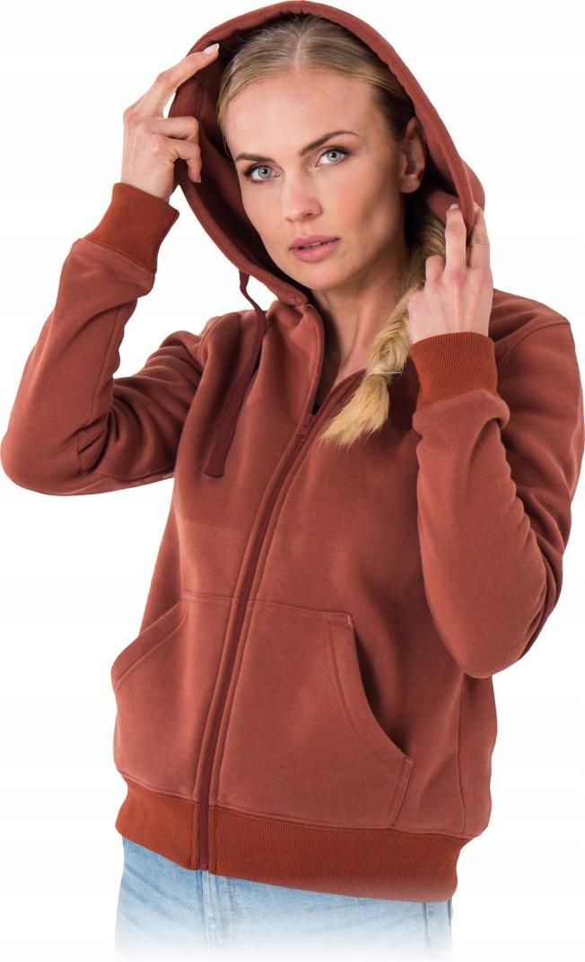 MALVA Bluza damska. dzianina: 100% poliester. Gramatura 220 g/m2. Zapinana na suwak. Kaptur ściągany na troczki. Dwie kieszenie w dolnej części bluzy. Dół bluzy oraz rękawy zakończone ściągaczem. Idealna zarówno do pracy, jak i codziennego użytku. Zgodna z normą EN ISO 13688. Marka: REIS