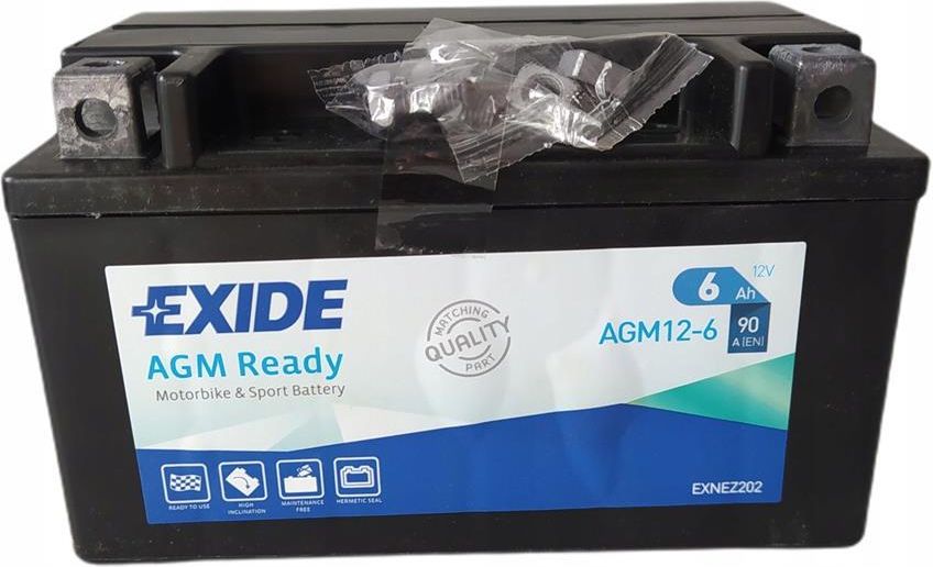 Akumulator EXIDE 12V / 6 Ah ETX7A-BS / YTX7A-BS Oferujemy na sprzedaż nowy, wysokiej jakości akumulator motocyklowy marki Exide, model ETX7A-BS (odpowiednik YTX7A-BS). Jest to niezawodny, bezobsługowy akumulator wykonany w technologii AGM (Absorbent Glass Mat), idealny do różnych modeli motocykli, skuterów oraz pojazdów typu ATV. Cechy i zalety Bezobsługowość: Dzięki technologii AGM akumulator nie wymaga uzupełniania elektrolitu ani specjalnej konserwacji.​ Wysoka moc rozruchowa: Prąd rozruchowy 90 A zapewnia pewne uruchamianie silnika w różnych warunkach.​ Odporność na wibracje i wstrząsy: Solidna konstrukcja zwiększa odporność na wstrząsy i wibracje, co przekłada się na dłuższą żywotność akumulatora.​ Specyfikacja techniczna Napięcie: 12V​ Pojemność: 6 Ah​ Prąd rozruchowy (EN): 90 A​ Wymiary: długość 150 mm x szerokość 87 mm x wysokość 94 mm​ Układ biegunów: Plus po lewej stronie (L+)​ Technologia: AGM (Absorbent Glass Mat)​ Każdy akumulator przed wydaniem zostaje sprawdzony profesjonalnym testerem DBT12+. Kupując u nas otrzymujesz produkt w pełni sprawny, naładowany i gotowy do pracy. Towar wysyłamy w każde miejsce w Polsce. Akumulatory Jasło | DTE Power sp. z o.o. Samochody osobowe Motocykle Ciągniki rolnicze Maszyny przemysłowe Kampery oraz wiele innych. Gwarantujemy uczciwą, solidną i fachową obsługę. Na oferowany asortyment zapewniamy serwis gwarancyjny. Współpracujemy z wiodącymi producentami akumulatorów, oferującymi wysoką jakość i trwałość. Zgodnie z ustawą o bateriach i akumulatorach, podczas sprzedaży nowego akumulatora, stary akumulator należy zwrócić u sprzedawcy w celu utylizacji. W przypadku jego braku pobierana jest opłata depozytowa w kwocie 30 zł. Opłata depozytowa jest zwracana w przypadku dostarczenia starego akumulatora w terminie 30 dni od daty zakupu.