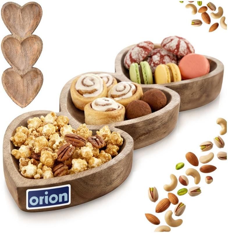 Talerz na przekąski drewniany dzielony serce MANGO 40×16 cm Stylowe serwowanie w naturalnym wydaniu Drewniany talerz na przekąski z trzema miseczkami w kształcie serc to efektowne naczynie do podawania oliwek, orzeszków, dipów, sosów czy słodkich pralinek. Wykonany ręcznie z egzotycznego drewna mangowca zachwyca naturalnym rysunkiem słojów i ciepłą barwą, a jednocześnie jest praktyczny i wygodny w codziennym użytkowaniu – idealny zarówno na co dzień, jak i na przyjęcia. Najważniejsze cechy produktu ✅ Ręcznie wykonany talerz z drewna mangowca o wymiarach 40 × 16 × 3,5 cm ✅ Trzy zintegrowane komory w kształcie serc – na różne rodzaje przekąsek ✅ Naturalne, odporne na wilgoć drewno, bezpieczne w kontakcie z żywnością ✅ Elegancki dodatek do stołu – idealny na przyjęcia, święta i spotkania z bliskimi Naturalne drewno mangowca Talerz wykonany jest w całości z egzotycznego drewna mangowca, które cechuje się wysoką odpornością na wilgoć i odkształcenia. Nie chłonie zapachów i szybko schnie, dzięki czemu świetnie sprawdza się jako naczynie do kontaktu z żywnością. Każdy egzemplarz ma niepowtarzalny rysunek słojów oraz odcień, co podkreśla jego rękodzielniczy charakter. Trzy serca – jedno naczynie Podłużny półmisek posiada trzy wyfrezowane wgłębienia w kształcie serc, połączone w jedną całość. Takie rozwiązanie pozwala w estetyczny sposób podać trzy różne przekąski na jednym talerzu – np. oliwki, orzeszki i suszone owoce lub trzy rodzaje dipów. Kształt serc dodaje całości lekkości i sprawia, że naczynie świetnie prezentuje się na stole. Idealny do przekąsek, tapas i deserów Talerz doskonale nadaje się do serwowania drobnych przekąsek podczas spotkań z rodziną i znajomymi, wieczorów filmowych, przyjęć świątecznych czy sylwestrowych. Sprawdzi się również do podawania tapas, sosów, mini ciasteczek lub pralinek, tworząc elegancką oprawę dla serwowanych smakołyków. Dekoracyjny akcent stołu na każdą okazję Dzięki połączeniu naturalnego drewna i motywu serc, talerz jest nie tylko praktycznym naczyniem, ale też stylową dekoracją stołu. Świetnie komponuje się zarówno z klasyczną, jak i nowoczesną zastawą. Może stać się ciekawym elementem aranżacji stołu podczas kolacji we dwoje, rodzinnego obiadu czy większego przyjęcia. Praktyczne wymiary i wygodna pielęgnacja Wymiary 40 × 16 × 3,5 cm sprawiają, że talerz jest poręczny i jednocześnie wystarczająco pojemny, aby pomieścić kilka rodzajów przekąsek. Dla zachowania jego piękna na dłużej zaleca się delikatne mycie ręczne i okazjonalne natłuszczenie powierzchni olejem do drewna przeznaczonym do kontaktu z żywnością. Oryginalny produkt czeskiej marki Orion, wykonany zgodnie z europejskimi standardami.