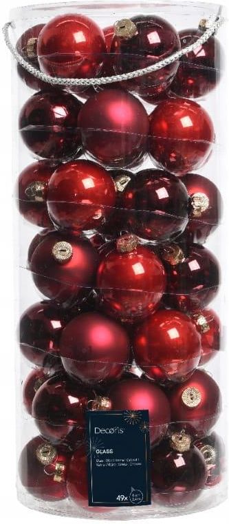 Kaemingk Zestaw 49 Szklanych Bombek Choinkowych 6Cm Czerwone Błyszczące Matowe Buk