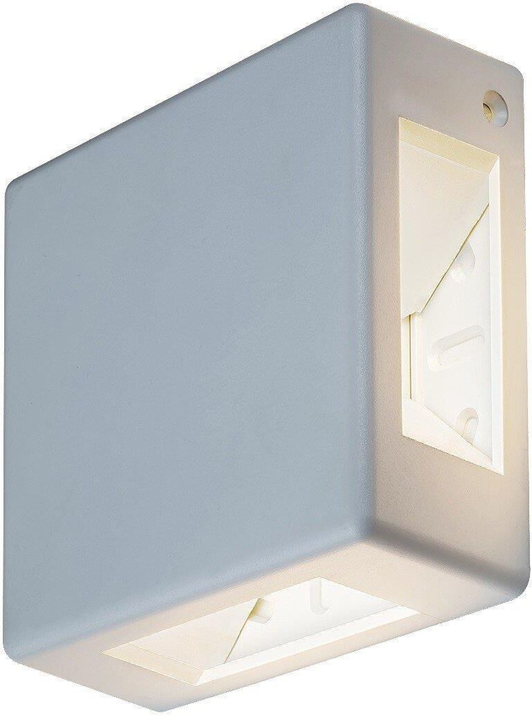 Nowoczesna lampa zewnętrzna Lippa jest w całości wykonana z tworzywa sztucznego w białym kolorze. Możesz zamontować ją na tarasie lub w dowolnym miejscu na zewnętrznej ścianie domu. Dzięki specjalnej konstrukcji, rzuca na ścianę spektakularne wiązki światła w czterech kierunkach, zapewniając niezwykłe wrażenia wizualne. Lampa Lippa zawiera wbudowane źródło światła LED o mocy 6W, strumieniu świetlnym 360 lumenów i żywotności 25 000 godzin. Żarówka ma temperaturę barwową 3000K co daje ciepłe białe światło. Wymiary tej kwadratowej lampy zewnętrznej to 120x120mm, odległość od ściany to tylko 50mm. Posiada stopień ochrony IP54, który zapewnia ochronę przed kurzem i strumieniami wody ze wszystkich kierunków. Na lampę zewnętrzną Lippa udzielamy 5-letniej gwarancji. Kategoria produktuLampy ogrodowe TypZewnętrzne lampy ścienne StylNowoczesne Pomieszczenieściana zewnętrzna Temperatura barwowaciepła biel Strumień świetlny źródła światła (lm)360 Specyfikacje źródła światła6W Technologia LEDtak Stopień ochrony IPIP54 Kolor lampybiały Materiał lampytworzywo sztuczne Materiał kloszatworzywo sztuczne Czas życia źródła światła (h)25000 Gwarancja (lata)5 Średnie zużycie energii (kwh/1000 Ah)6.0 Specyfikacje oprawy oświetleniowejLED 6W Stosowane napięcie230V, 50Hz Odległość od ściany50.0 Poziomo (mm)120.0 Pionowy (mm)120.0 Indywidualny rozmiar pudełka X (cm)12.5 Indywidualny rozmiar pudełka Z (cm)12.5 Indywidualny rozmiar pudełka Y (cm)5.5 Waga netto (kg)0.22 Waga brutto0.26 barwa światła (K)3000 klasa ochronnościII