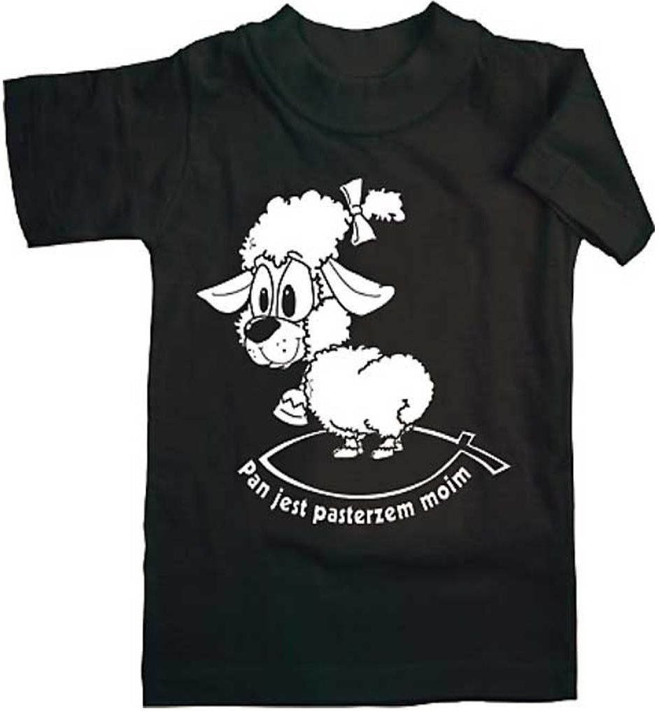Koszulka z grafiką owieczki i napisem: Pan jest pasterzem moim. Gramatura materiału 155g/m2. Skład: 100 % bawełna, ściągacz przy szyi bawełna z dodatkiem lycry. Metoda wykonania nadruku: sitodruk. Można prać w pralkach automatycznych zgodnie z instrukcją na metce.