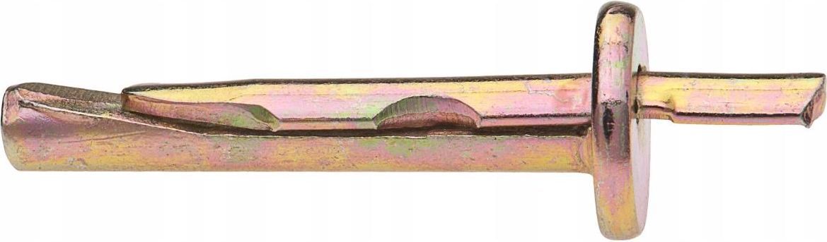 PARAMETRY KOTWA METALOWA ROZPRĘŻNA DO SUFITÓW PODWIESZANYCH Średnica kotwy: 6 mm Długość kotwy: 65 mm Średnica wiertła: 6 mm Minimalna głębokość otworu: 40 mm Maksymalna długość użytkowa: 35 mm Ilość w opakowaniu jednostkowym (opJ): 100 sztuk Podłoże: beton, kamień naturalny, mur z cegły pełnej KOTWA METALOWA ROZPRĘŻNA DO SUFITÓW PODWIESZANYCH 6x65mm - 100sztuk Kotwa metalowa, rozprężna, wbijana do sufitów podwieszanych każdego rodzaju, perforowanych taśm metalowych, profili metalowych, itp. Kotwa stosowana jest jako zamiennik standardowych kołków szybkiego montażu tam, gdzie wymagane jest użycie łączników stalowych. Podwyższona odporność na działąnie ognia, kotwa wykonanaw klasie A1 (niepalne). Przeznaczona do montażu w podłożu: betonowego, z kamienia naturalnego, z cegły pełnej.