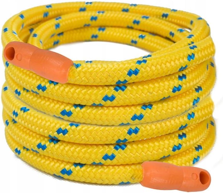 Deku - Lina animacyjna do skakania z zakończeniami - 20 metrów 578388 Lina wykonana jest z bardzo wytrzymałego, wysokogatunkowego materiału, stworzona z nietoksycznych oraz atestowanych włókien. To wszystko sprawia, że nasze liny są bezpieczne dla dzieci oraz bardzo wytrzymałe. Lina do skakania to nie tylko wspaniała zabawa dla całej rodziny, ale i pomoc dydaktyczna. Liny animacyjne wykorzystywane są w szkołach, przedszkolach, na zajęciach rekreacyjno-ruchowych, na obozach animacyjnych, na zajęciach pozalekcyjnych oraz podczas zabaw w domu i w ogrodzie. Lina przeznaczona jest dla dzieci, młodzieży oraz dla dorosłych, może służyć jako lina do przeciągania, lub do skakania, ale ma również wiele innych zastosowań. Lina ma udźwig nawet 150 kg, więc można swobodnie na niej się huśtać. Specyfikacja: długość: 20 metrów materiał: wytrzymały sznur średnica: ok 2 cm obwód: ok 5,5 cm udźwig: 150 kg kolor: żółty lina posiada zakończenia wykonane z tworzywa Główny kolor liny to żółty natomiast kolor dodatkowy może się zmieniać. Zastrzegamy sobie prawo do wysłania losowego koloru. Jesteśmy producentem profesjonalnego sprzętu animacyjnego dla dzieci. Prowadzimy sprzedaż detaliczną oraz hurtową. Dokładamy wszelkich starań aby oferta, którą prezentujemy, była jak najlepsza. Stale rozszerzamy nasz asortyment, by trafić w gusta, oczekiwania oraz potrzeby naszych klientów. Posiadamy szeroki wybór lin animacyjnych do wspinaczki, skakania i przeciągania, a niedługo będziemy rozszerzać naszą ofertę o kolejne artykuły.