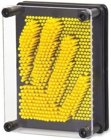 Zrób sam obraz w 3D! Tego rodzaju zabawki można zaliczyć do grona genialnych wynalazków. Bawią, rozwijają wyobraźnię, a przede wszystkim nigdy się nie nudzą, bo jeśli tylko opatrzy nam się konkretny obraz, możemy z łatwością wyczarować inny. W ramce umieszczonych jest blisko 700 plastikowych szpilek, które odwzorowują plastycznie kształt przyłożony do drugiej strony ramki i zachowują ten trójwymiarowy obraz póki nie przechylimy całości. Wymiary: 141x102 mm