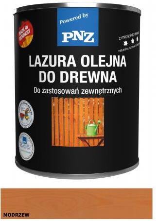 PNZ Lazura Olejna ochronna do drewna 0,1L Modrzew UWAGA: Sprzedawany przedmiot jest próbką produktu. Wysyłany jest w metalowej puszce o pojemności 100ml bez etykiety producenta. Opakowanie zawiera jedynie naklejkę określającą zawartość. Do każdego zakupu dodajemy kartę techniczną zakupionego produktu. Lazura Olejna to dekoracyjna, transparentnie barwiąca powłoka do ochrony drewna na zewnątrz. Została opracowana na bazie naturalnych olejów roślinnych, które wnikają głęboko w drewno, zachowując jego elastyczność i zdrowy wygląd. Produkt nadaje drewnu piękny kolor, pozostawiając doskonale widoczny rysunek słojów drewna. Lazura zawiera aktywne składniki chroniące ją przed atakiem pleśni, alg i grzybów i sprawdza się od dziesięcioleci, również w ekstremalnych warunkach klimatycznych. ochrona UV znakomita odporność na działanie czynników atmosferycznych mocno hydrofobowa Wydajność: 25m2 / L Zakres stosowania: Wszystkie gatunki drewna stosowane na zewnątrz takie jak okna, okiennice, domki ogrodowe, fasady drewniane, płoty, meble ogrodowe. Może być stosowana jako pierwsza impregnacja jak i do renowacji powłoki. Lazura olejna do drewna jest lazurującą , niekapiącą , łatwą w użyciu, hydrofobową , mikroporowatą i odporną na UV powłoką do drewna. Zapewnia znakomitą ochronę przed działaniem czynników atmosferycznych i promieniowania UV z dobrymi właściwościami penetrującymi, łatwa w aplikacji i neutralna zapachowo. Najważniejsze zalety Lazury Olejnej PNZ POZWALA DREWNU ODDYCHAĆ: Naturalne oleje do drewna wnikają głęboko w pory drewna, a substancje stałe zapewniają drewnu ochronę od zewnątrz przed np. szkodliwym działaniem wilgoci. Drewno pokryte Lazurą przyjmuje i oddaje wilgoć bez jakichkolwiek uszkodzeń powłoki. NATURALNE SKŁADNIKI: Lazura została opracowana na bazie uszlachetnionych olejów naturalnych jak olej sojowy i słonecznikowy oraz wosków naturalnych. Idealna do naturalnej, przyjaznej dla środowiska ochrony drewna. ŁATWA APLIKACJA: Powłoka na bazie naturalnych olejów nie wymaga stosowania gruntów ani podkładów. Zapewnia znakomite pokrycie powierzchni drewna ze względu na wysoką zawartość substancji stałych. Długi czas obróbki sprawia, że łatwo otrzymać idealną powłokę bez śladów pociągnięć pędzla. Nie trzeba rozcieńczać produktu – jest gotowy bezpośrednio do użycia Przygotowanie podłoża podłoże musi być czyste, suche , wolne od tłuszczu i nośne ( stare powłoki przeszlifować ) . Zwietrzałe powierzchnie zeszlifować do nośnego drewna Zanieczyszczenia usunąć za pomocą odpowiedniego środka czyszczącego. W przypadku drewna iglastego stosowanego na zewnątrz celem ochrony przed grzybami należy przed pierwszym malowaniem zastosować odpowiedni impregnat Temperatura stosowania (włącznie ze schnięciem ) od + 8 °C. wilgotność drewna maksimum 18 %. wilgotność powietrza < 60 %. Dobrze wymieszać zawartość przed i w czasie użycia. Zróżnicowanie działanie w zależności od powierzchni. Wymagane zrobienie próby APLIKACJA Lazurę olejną nanieść na drewno za pomocą pędzla, wałka bądź pistoletu natryskowego, z zachowaniem każdorazowo 12 godzinnego okresu schnięcia. Po tym czasie drewno jest odporne na działanie czynników atmosferycznych. Mikroporowate powłoki oczyścić, ewentualnie przeszlifować, następnie nanosić zgodnie z wcześniejszym opisem. Po użyciu umyć pędzel i narzędzia przy pomocy rozcieńczalnika lub terpentyny. Zużycie: ok. 40 ml/m², tzn. 1 litr lazury olejnej do drewna wystarcza na ok. 25 m² powierzchni przy jednej warstwie. W zależności od rodzaju drewna i powierzchni ( heblowane albo zgrubnie przetarte ). Zużycie może wzrosnąć przy ryflowanym drewnie (współczynnik 2-3 ). Mniejsze zużycie wpływa na trwałość powłoki.