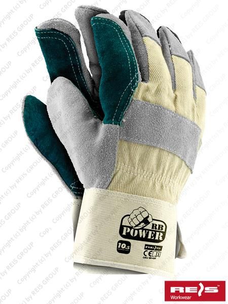 RBPOWER Rękawice ochronne wzmacniane skórą bydlęcą. skóra bydlęca dwoinowa. Część chwytna, palec wskazujący oraz kciuk dodatkowo wzmacniane skórą bydlęcą, dzięki czemu rękawica jest odporniejsza na przetarcie i zużycie. Mankiet usztywniony kauczukowy. Od wewnątrz wypodszewkowane, co podnosi komfort użytkowania. Popularnie stosowane do ogólnych prac mechanicznych. Wykorzystywane w budownictwie, przemyśle ciężkim. Idealne do przenoszenia przedmiotów, które kładą duży nacisk na część wewnętrzną rękawicy, jak na przykład metalowe pręty. Marka: REIS Produkt polecany dla branż: Prace budowlane i remontowe Prace montażowo-instalacyjne Budowa dróg,Przemysł ciężki w tym odlewnie i spawalnictwo Minimalna ilość zamówienia to opakowanie zawierające 12 par (sprzedaż tylko w pełnch opakowaniach).Cena podana jest za parę rękawic.