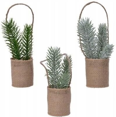 Sztuczna roślina w jucie 15cm stroik dekoracyjny świąteczny Sztuczna roślina w jucie to stroik świąteczny, który sprawi, że w Twoim domu zagości magiczna atmosfera. Można ustawić go w dowolnym miejscu w mieszkaniu tak by przykuwał uwagę zarówno domowników jak i gości. Roślina sprawdzi się także jako ozdoba drzwi, gdyż posiada uchwyt umożliwiający jej powieszenie. Parametry Marka: Decoris Rodzaj: Stroik dekoracyjny na stół wysokość: 15 cm szerokość: 5 cm zastosowanie: do wewnątrz dekoracja: juta wzór gałązek: zielone, oszronione lub obsypane brokatem Produkt dostępny w kilku wzorach. Wydawany losowy wzór - dostępny w magazynie.