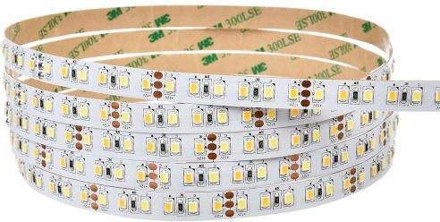 Taśma LED CCT (bicolor) 2835 600 SMD 12V IP20 to model taśmy z możliwością zmiany temperatury barowej z zakresu od 2700K do 6500K. Dzięki zastosowaniu naprzemiennie diod LED 2835 w barwie 2700K oraz 6500K, uzyskujemy możliwość zmiany temperatury barwowej za pomocą odpowiedniego sterownika LED CCT. Emituje duży strumień świetlny rzędu 2035 lumenów na metr przy niskim poborze mocy.Polecamy ją do celów aranżacyjnych, szczególnie dla klientów chcących uzyskać szeroki zakres temperatury barwowej przy zastosowaniu jednej taśmy LED. Główne cechy taśmy LED CCT: Możliwość regulacji temperatury barwowej w zakresie od 2700K do 6500K