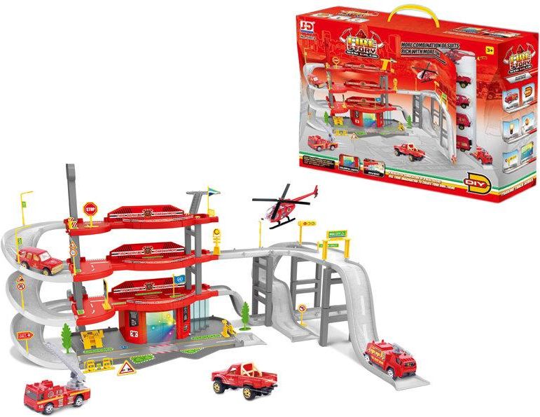 DUŻY ZESTAW - POSTERUNEK STRAŻY Z ULICAMI/PARKINGIEM DO ZABAWY I SAMOCHODAMI Zestaw posterunku straży pożarnej wykonanej z plastiku wraz z ulicami zachwyci każde dziecko. Posterunek straży pożarnej oraz przyległy do niej parking dla samochodzików to wspaniały pomysł na prezent dla każdego chłopca. …