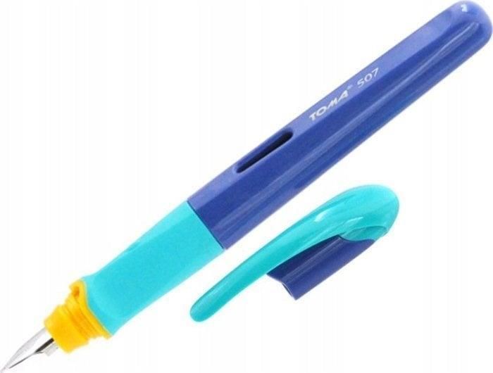 Pióro wieczne Fine - 507 mix (24szt) TOMA Pióra wieczne ze stalówką ze stali szlachetnej, stalówka pozwala na pisanie linią 0,5 mm. Wysokiej jakości podajnik atramentu znajduje się tuż przy końcówce stalówki i umożliwia utrzymanie stałej ilości atramentu na stalówce a profilowany gumowany uchwyt pozwala na pisanie bez zmęczenia palców. Pióra przeznaczone są do użytku szkolnego, zasilane standardowymi nabojami atramentowymi (nabój w komplecie).Pióra dostępne w displayu po 24 sztuki. Wymiary: 150x128 mm Opakowanie: pudełko