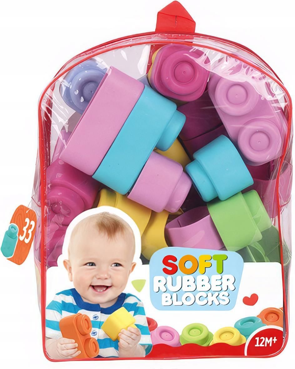 Klocki Miękkie Gumowe 33 szt. Plecak Różowy dla Dzieci 12M+ Prezent Miękkie gumowe klocki 33 elementy Klocki Miękkie Gumowe to zestaw 33 różnorodnych elementów, który pobudza wyobraźnię i wspiera rozwój dziecka już od 12 miesiąca życia. To bardzo ważne:❗ ✅ Zestaw 33 elementów ♥️Piękne pastelowe kolory, które przyciągają uwagę dziecka ✌️Bezpieczne dla dziecka – wykonane z miękkiej, nietoksycznej gumy ☀️Łatwe w czyszczeniu i odporne na wilgoć ☺️Idealne jako gryzak podczas ząbkowania 〰️Elastyczne i odporne na intensywną zabawę Różnorodność Kolorów i Tekstur Każdy klocek w zestawie wyróżnia się pięknymi, kontrastującymi kolorami, które przyciągają uwagę maluszka i zachęcają do eksploracji. Dzięki różnorodnym kształtom i wypukłym elementom klocki wspierają rozwój zmysłów, takich jak dotyk i wzrok. Maluszek poznaje nowe kształty i tekstury, ćwiczy zdolności percepcyjne oraz uczy się rozróżniać kolory. Bezpieczne i Przyjazne Małym Rączkom Klocki wykonane są z wysokiej jakości, miękkiej i nietoksycznej gumy, dzięki czemu są całkowicie bezpieczne dla najmłodszych użytkowników. Miękka, elastyczna konstrukcja sprawia, że klocki są idealne do ściskania, zgniatania, a nawet gryzienia, co jest szczególnie ważne w okresie ząbkowania. Klocki stanowią doskonałą alternatywę dla twardych przedmiotów, które dziecko może próbować gryźć. Łatwe w Czyszczeniu Utrzymanie klocków w czystości jest bardzo proste! Można je umyć pod bieżącą wodą lub delikatnie przeczyścić szczoteczką, co sprawia, że są idealne do zabawy zarówno w domu, jak i w wannie, a nawet na świeżym powietrzu. Dzięki trwałemu materiałowi, z którego zostały wykonane, klocki są odporne na codzienne użytkowanie i idealnie sprawdzą się jako zabawka, którą dziecko może zabrać ze sobą wszędzie. Specyfikacja SKU: Z005 Ilość elementów: 33 Wiek dziecka: 12 miesięcy i więcej Materiał: Miękka, nietoksyczna guma bezpieczna dla dzieci Kolory: Różne kolory, przyciągające uwagę i stymulujące zmysły Rodzaj opakowania: Przezroczysty plecak wielokrotnego użytku – idealny do przechowywania i transportu Czyszczenie: Możliwość mycia pod bieżącą wodą lub przecierania szczoteczką z łagodnym środkiem myjącym Certyfikaty bezpieczeństwa: Produkt wolny od BPA, wykonany z bezpiecznych materiałów, spełniający normy CE i EN71 Funkcje dodatkowe: Elastyczne, idealne do ściskania, zgniatania i gryzienia Rozwijają zdolności sensoryczne i manualne Bezpieczne zaokrąglone krawędzie, łatwe do chwytania przez małe rączki Odpowiednie do zabawy w wannie, odporne na działanie wody
