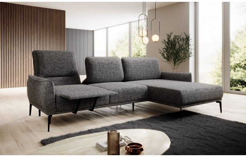 Narożnik Storm S to nowoczesny mebel z funkcją elektrycznego podnóżka, przesuwnymi oparciami i możliwością wygodnego dopasowania do indywidualnych potrzeb.