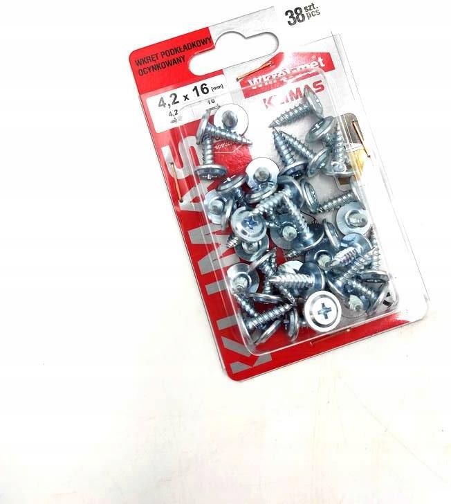 Wkręty podkładkowe 38 szt Wkręt podkładkowy samogwintujący wykonany ze stali węglowej, utwardzony powierzchniowo w powłoce cynkowej. Stosowany do mocowania cienkich blach na zakład. Cechy: Łeb podkładkowy z gniazdem Ph zapewnia odpowiedni docisk elementu mocowanego. Ułatwieniem przy montażu jest …