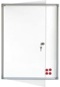 Gabloty informacyjne, są niezastąpione gdy chcemy wyeksponować ważne obwieszczenia, wymagające szczególnego wyróżnienia lub dodatkowej ochrony. Gabloty posiadają zamknięcie na kluczyk co zapewnia zabezpieczenie treści przed zniszczeniem lub zerwaniem przez postronne osoby. Gablota wykonana jest z profilu aluminiowego z plastikowymi narożnikami w kolorze popielatym, przeznaczona do użytku wewnątrz budynku. Drzwiczki z pleksi z zamkiem na kluczyk. Tył gabloty wzmocniony blachą ocynkowaną stanowiącą ochronę przed wilgocią. Powierzchnia suchościeralno-magnetyczna umożliwia stosowanie magnesów do umieszczania treści oraz pisanie markerami suchościeralnymi. Drzwiczki otwierane do góry. W zestawie: elementy mocujące, kluczyk. Gwarancja: 2 lata