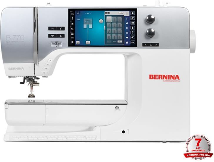 Maszyna do szycia i Hafciarka komputerowa Bernina B735 Twoja Pasja, Nasza Jakość! Wyjątkowa hafciarka Bernina B735 to urządzenie najwyższej jakości, dzięki któremu uzyskasz to, co najlepsze za swoje pieniądze. Gwarantuje ona precyzję realizacji oraz długowieczność działania, dzięki czemu jest to wybór nie tylko ekonomiczny i łagodny dla portfela, lecz także eco-friendly ze względu na obniżoną ilość odpadów elektrycznych. To profesjonalne narzędzie z niezwykle wygodną obsługą – zapewniają to między innymi praktyczny przemysłowy chwytacz 9. Generacji „Bernina Hook”, a także wygodny joystick, służący do obsługi sprzętu. Wielopoziomowe oświetlenie LED tudzież 1255 programów ściegowych pozwoli dać upust twojej kreatywności. Hafciarka Bernina B735 to hafciarka, którą cechuje obszerna wielkość haftu – aż 400 × 210 mm. Dzięki temu szybko można pokryć zdobieniami materiały o dużej powierzchni. Funkcja Pinpoint Placement ułatwia dokładne pozycjonowanie igieł, zmianę rozmiaru oraz wyrównywanie projektów haftu. Dzięki precyzyjnym igłom możliwe jest haftowanie na czapkach bądź innych trudnych do wygodnego ułożenia elementach odzieży, na przykład na nogawkach. Wykorzystując igły wycinające Bernina CutWork i oprogramowanie Bernina ARTLink twoje prace będą innowacyjne, nowoczesne i modne. Postaw na markę Bernina – zamieniaj swoje pomysły w rzeczywistość. Uwaga! Oferta dotyczy modelu B735 w komplecie z modułem haftującym. Jest to fantastyczna maszyno-hafciarka o polu haftu 400 x 210 mm! FUNKCJE HAFTOWANIA Duże pole haftowania, aż 400 x 210 mm! Maszyna i hafciarka Bernina B735 posiada pole haftu 400 x 210 mm Haftuje na czapkach, nogawkach, rękawach Hafciarka posiada wbudowane tzw. wolne ramię, dlatego też możemy haftować na rękawkach, nogawkach czy też wąskiej odzieży niemowlęcej. Po zakupie opcjonalnego tamborka Bernina do haftu na czapkach uzyskamy możliwość haftowania na czapkach. Pole haftu to 15 x 13 cm. Nowoczesny chwytacz rotacyjny BERNINA HOOK Jest on frezowany przez roboty z bloku metalu, a nie wylewany do formy. Zapewnia to idealnie gładką drogę dla nici. Gwarancja optymalnego, stałego naprężenia nici. Łatwy w użyciu: łatwe zdejmowanie, łatwe czyszczenie, łatwy montaż. Dodatkowo pojemność szpulki jest o 70% większa niż przy tradycyjnym chwytaczu. BERNINA HOOK jest wykonany z wysokiej jakości materiałów. Duży kolorowy ekran dotykowy 7 cali Maszyna i hafciarka B735 posiada duży ekran dotykowy 4,3 cala, rozdzielczości HD i kątach widzenia 180 stopni, na którym wybieramy funkcje, ściegi i ustawienia. Ekran posiada kontrastowe, jasne kolory co jest mniej męczące dla oczu. Możemy też regulować jasność ekranu dla większego komfortu. Programowane obcinanie ściegów przeskokowych Maszyna do szycia i hafciarka Bernina B735 obcina nitki łączące np. litery czy bloki kolorystyczne. Można ustawić długość odcinków obcinania nici Nie trzeba tego robić ręcznie! Funkcja optymalizacji gęstości haftu Maszyna do szycia i hafciarka Bernina B735 posiada funkcję automatycznej optymalizacji gęstości haftu przed zapisem. Funkcja automatycznego wykrywania wielkości tamborka Maszyna do szycia i hafciarka Bernina B735 automatycznie wykrywa wielkość zakładanego tamborka. Zestaw haftów W zestawie mamy, aż 250 tematycznie różnych haftów. Nieograniczone możliwości. Uwolnij swoją wyobraźnię! 6 czcionek hafciarskich W zestawie, aż 6 wielowymiarowych czcionek do haftowania. Twórz i haftuj napisy i monogramy. Podpisuj swoje projekty. Czujnik zerwania nitki górnej i braku w szpulce nitki dolnej Maszyna do szycia i hafciarka Bernina B735 posiada czujnik zerwania nitki górnej oraz braku na szpulce nitki dolnej. Automatyczne Adaptacyjne Naprężenie Nici BERNINA Adaptive Thread Tension, innowacja firmy BERNINA, zapewnia idealne naprężenie nici podczas szycia, aby osiągnąć doskonałą jakość ściegu po obu stronach tkaniny. Po ustawieniu naprężenia zgodnie z do użytej nici i tkaniny, BERNINA Adaptive Thread Tension będzie stale sprawdzać naprężenie nici, regulując je automatycznie w razie potrzeby. Automatyczne programowane obcinanie nici Bernina B735 posiada funkcję automatycznego obcinania nici. Długość odcinka nitki po obcięciu możemy zaprogramować w zakresie od 1-15 mm. Wystarczy wcisnąć przycisk i nici zostaną automatycznie obcięte. Duży komfort pracy! Automatyczny nawlekacz igły Maszyna do szycia posiada automatyczny nawlekacz igły prosty w użyciu i miękko, komfortowo działający. Bardzo potrzebny, w końcu nie musisz sięgać po okulary! Solidna, wytrzymała konstrukcja Wysoka, szwajcarska jakość! Hafciarka jest duża ciężka, masywna i solidna. Wykonana z materiałów najwyższej jakości, co stabilizuje maszynę i zmniejsza wibracje. Podzespoły i rama maszyny wykonane są ze stali. Posiada wzmocnioną konstrukcję "Heavy Duty" Wysoka prędkość pracy Prędkość haftowania jak w hafciarkach przemysłowych, aż do 1000 wkłuć na minutę. Port USB Maszyna posiada port USB, co daje możliwość podłączenia klucza USB z aktualizacją czy projektami które można importować. Funkcja „Restart” wzoru Funkcja daje możliwość ponownego rozpoczęcia w miejscu przerwania ściegu. Profesjonalne oświetlenie 30 diodami LED Maszyna jest wyposażona w diodowe oświetlenie 30 lampami LED. Oszczędność energii, dożywotnia gwarancja. Światło jednobarwne zbliżone do naturalnego. Nie rzuca cienia i nie męczy Twoich oczu! Maszyna ma regulację natężenia światła można go także programowo zupełnie wyłączyć! Odczyt wielu formatów wzorów Hafciarka pokaże na ekranie pliki haftów w wielu formatach innych firm vp3,vip,pec,hus,dst,exp,jef,pes Rozbudowane funkcje edycji i sterowania haftem Bardzo bogate funkcje dostępne na ekranie: edycja wzoru, łączenie haftów, pozycjonowanie, obrót, odbicie lustrzane w pionie i po