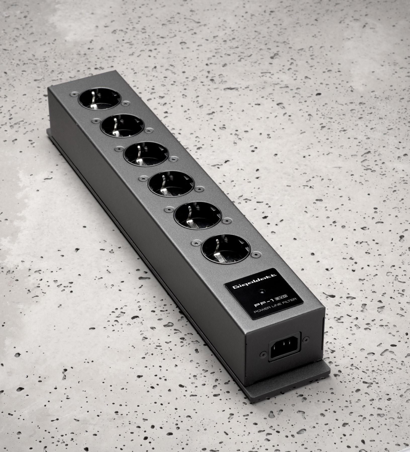 Filtrująca listwa sieciowa z przewodem zasilającym PF-1 EVO jest najnowszą, zmodyfikowaną wersją podstawowej filtrującej listwy sieciowej, zaprojektowanej do dystrybucji zasilania i ochrony budżetowych systemów audio i video. W nowym modelu, okablowanie wewnętrzne oparte jest na firmowym przewodzie GigaWatt Powerlink z miedzi OFHC, o przekroju 4mm2. PF-1 EVO to szczególny produkt w ofercie GigaWatta, ponieważ zaskakuje solidną konstrukcją, jakością wykonania, oraz nadzwyczajnie pozytywnym wpływem na brzmienie, przy jednocześnie przystępnej cenie. Listwa zbudowana jest z elementów wysokiej jakości. Za tłumienie zakłóceń odpowiedzialny jest filtrujący blok typu RLC. Zbudowano go w oparciu m.in. o metalizowane kondensatory poliestrowe o niskiej indukcyjności oraz o rdzeń filtrujący typu IP (Iron Powder). Wszystkie podzespoły filtra montowane są srebrnym lutowiem na masywnej płytce drukowanej ze ścieżkami o bardzo dużym przekroju. W listwie zrezygnowano z użycia tradycyjnych elementów zabezpieczających, takich jak bezpieczniki topikowe czy termiczne, które dławiąc swobodny przepływ prądu do chronionych obwodów wywierają negatywny wpływ na brzmienie. Ochronę przeciwprzepięciową listwy zapewnia kaskadowy system zabezpieczeń złożony z iskierników plazmowych oraz nowej generacji warystorów UltraMOV. Elementy te współdziałając z prawidłowo wykonaną, współczesną instalacją elektryczną, gwarantują kompleksową ochronę przed przepięciami i przetężeniami. W PF-1 EVO zastosowano innowacyjny system dystrybucji prądu, będący własnym opracowaniem firmy. Oparty jest on na masywnych szynach dystrybucyjnych drugiej generacji, wykonanych z polerowanych sztab z miedzi katodowej (Cu-ETP) o wysokiej czystości. System ten dostarcza prąd bezpośrednio do każdej pary gniazd wyjściowych poprzez połączenia zaciskane i skręcane. Wewnątrzne okablowanie wykonano przewodnikami GigaWatt Powerlink z miedzi OFHC o przekroju 4 QMM. Zastosowanie topologii połączeń w gwiazdę oraz wysoka przewodność i masywny przekrój poprzeczny rzędu 30 QMM każdej z szyn, zapewnia równomierny i stabilny rozkład mocy niezależnie od obciążenia poszczególnych wyjść listwy. Listwa PF-1 EVO wyposażona jest w sześć, wysokiej jakości gniazd sieciowych GigaWatt G-040 typu Schuko, zaprojektowanych i wyprodukowanych we własnym zakresie. Mosiężne styki gniazd zostały fabrycznie poddane procesowi srebrzenia technicznego bez udziału metali pośrednich takich jak warstwa miedzi czy niklu, które mogłyby wprowadzać niekorzystną rezystancję szeregową i spadek napięcia. Powiększona powierzchnia styków oraz gruba warstwa srebra gwarantuje pewny kontakt z bolcami wtyków. Gniazda zostały dodatkowo poddane modyfikacji kriogenicznej oraz procesowi demagnetyzowania. W celu skutecznego zabezpieczenia przed dostępem dzieci, gniazda G-040 zostały wyposażone w zintegrowane przesłony przeciwporażeniowe (podwyższona ochrona przed dotykiem zgodna z VDE 0620). PF-1 MK2 dostępna jest również w wersji z gniazdami sieciowymi typu NEMA 5-20R, stosowanymi w Ameryce Północnej i w niektórych krajach azjatyckich, oraz z austalijskimi gniazdami typu AS/NZS 3112. Masywną obudowę listwy wykonano w całości z metalu. Stanowi ona również doskonale szczelny ekran chroniący przed zakłóceniami RFI i EMI. Listwa wyposażona jest również w diodę LED sygnalizującą prawidłową pracę urządzenia. W PF-1 EVO zastosowano wejściowe gniazdo IEC, które pozwala użytkownikowi na podłączenie dowolnego kabla sieciowego. Listwa standardowo wyposażona jest w przewód zasilający LC-1 EVO o długości 1.5 m. W celu wykorzystania maksymalnego potencjału PF-1 MK2 zalecane jest zastosowanie kabla sieciowego LC-3 EVO lub LC-2 EVO. Specyfikacja Techniczna: Gniazda wyjściowe: EU (Schuko), US (Nema 5-20R), AU (AS/NZS 3112) Napięcie zasilania: 220-240 VAC 50/60 Hz lub 110-120 VAC 50/60 Hz Maksymalne obciążenie: 3 680 W Prąd maksymalny (ciągły): 16 A Pochłaniany udar prądowy: 13 000 A Wymiary (dł. x szer. x wys): 420 x 75 x 60 mm Waga brutto: 3,8 kg Ekranowany przewód zasilający GigaWatt LC-2 EVO GigaWatt LC-2 EVO to wysokiej jakości przewód zasilający zaprojektowanego do zasilania systemów audio i video klasy Hi-Fi i HI-END. Jest on również podstawowym wyposażeniem listew i kondycjonerów sieciowych GigaWatt. Siedem litych przewodników o przekroju 1,5 mm2 i wysokiej konduktancji, ułożonych jest w splot o nowo opracowanej geometrii. Gwarantuje to pewny, niezdławiony przepływ prądu oraz nie dopuszcza do pojawiania się zakłóceń na wyjściu. Niska rezystancja kabla, wynikająca z przekroju przewodników oraz sposobu ich połączenia ze złączami, gwarantuje potężną rezerwę prądową. Z kolei jego relatywnie duża pojemność własna, która wynika z geometrii żył oraz właściwości dielektryka, zapewnia doskonałe właściwości filtrujące i tłumiące dla szerokiego zakresu zakłóceń. Izolację przewodników wykonano nowego, elastycznego materiału izolacyjnego PK90AT28 o bardzo niskiej stałej dielektrycznej. Zewnętrzny płaszcz wykonano z miękkiego materiału izolacyjnego GA 70AT03, tłumiącego niepożądane wibracje. Dodatkową ochronę kabla stanowi srebrny, odporny na ścieranie oplot z tworzywa sztucznego. Żyły kabla chronione są ekranem statycznym, wykonanym z laminowanej folii aluminiowej wraz z wewnętrzną miedzianą żyłą spływową. Szczelna konstrukcja ekranu pokrywająca 100% powierzchni przewodu, doskonale chroni przed wszelkimi zewnętrznymi zakłóceniami. Jednocześnie ekran zapobiega powstawaniu i rozprzestrzenianiu się wewnętrznych zakłóceń, a także cofa zebrane prądy pasożytnicze do żyły uziemiającej. Kabel zaopatrzono w wysokiej jakości wtyczki z rodowanymi stykami o dużej powierzchni, zapewniającymi stabilny przepływ prądu. Styki zostały poddane procesowi demagnetyzowania. Wszystki