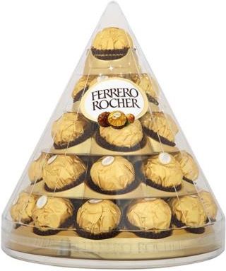 Niektóre słodycze są tak pyszne, że znikają bardzo szybko ze stołu. Jednym z takich właśnie przysmaków są popularne praliny FERRERO ROCHER, które mają bardzo oryginalny i niepowtarzalny smak. Praliny te doskonale nadają się na prezent, gdyż prezentują się bardzo ładnie. Eleganckie opakowanie sprawia, że FERRERO ROCHER Praliny można wręczyć najważniejszej dla nas osobie i zobaczyć uśmiech na jej twarzy. Połączenie pysznego, delikatnego smaku i zupełnie innego wyglądu sprawiło, że czekolada Ferrero Rocher 350g stała się wyjątkowym „gorącym hitem” prezentu na koniec roku. Wystawiając tacę ze słodyczami podczas święta Bożego narodzenia lub sprytnie dekorując ją jak choinkę, w ramach tej wyjątkowej i imponującej linii produktów znajdziesz niezliczone sugestie. Elegancję tego smakołyku podkreśla wytworne opakowanie w kształcie choinki (stożka). Data minimalnej ważności: 20.04.2025 Składniki: CZEKOLADA MLECZNA 30% (cukier, masło kakaowe, miazga kakaowa, odtłuszczone MLEKO W PROSZKU, CZYSTE MASŁO W TŁUSZCZU, emulgator lecytyny (SOJA), wanilina), ORZECHY LASKOWE (28,5%), cukier, olej palmowy, MĄKA PSZENNA, SŁODKA SERWATKA W PROSZKU, kakao o niskiej zawartości tłuszczu, emulgator lecytyny (SOJA), Środek spulchniający: wodorowęglan sodu, sól niskotłuszczowa, wanilina. Wartości odżywcze na 100 g: Wartość kaloryczna: 603,00 kilokalorii (kcal) Wartość kaloryczna: 2 506,00 kilodżuli (kJ) Tłuszcz: 42,70 Tłuszcz, w tym nasycone kwasy tłuszczowe: 14,10 Węglowodany: 44,40 Węglowodany, w tym cukier: 39,90 Białko: 8,20 Sól: 0,15 Informacje dla alergików Zawiera: Mleko i produkty mleczne (łącznie z laktozą), orzechy i produkty z orzechów, zboża zawierające gluten i produkty zbożowe zawierające gluten, soję i produkty sojowe. Kraj pochodzenia: Fr