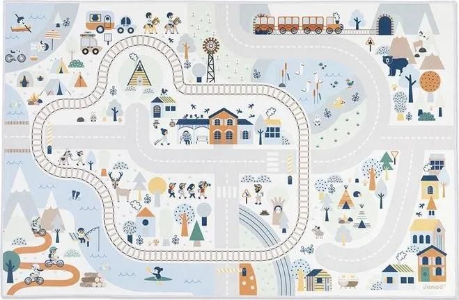 Mata-dywan do zabawy z drogą Biała dolina z kolekcji Cross Roads francuskiej marki JANOD to idealny prezent dla dzieci już od 2. roku życia. Ma spore rozmiary 120 x 77,5 cm, jest przyjemna w dotyku oraz pozostaje na swoim miejscu, dzięki antypoślizgowej warstwie spodniej. Mata przedstawia bogatą w …