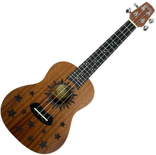 Ukulele koncertowe (23") z serii FUN graphic z laserowym motywem STARS. Płyta wierzchnia: Sapele. Boki i tył: Sapele. Gryf: okume. Podstrunnica i mostek technical wood. Profesjonalne olejowe maszynki (die cast). Komplet z firmowym pokrowcem.