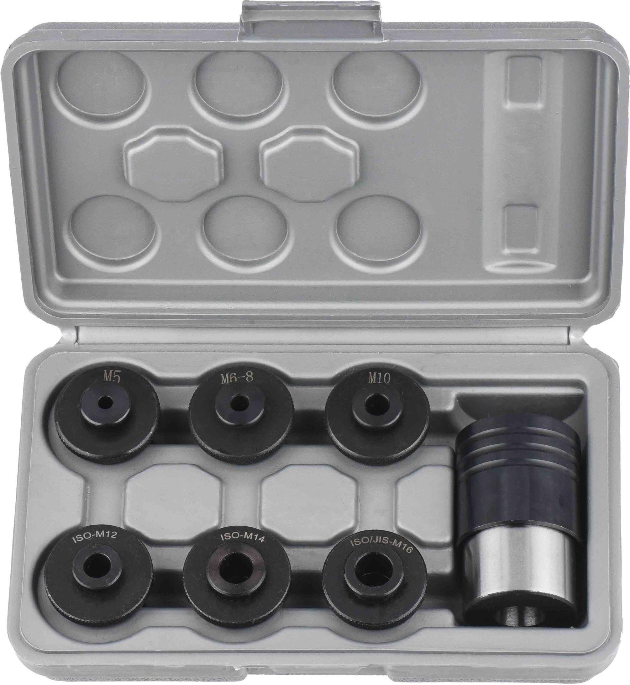 Uniwersalna głowica zaciskana podwójnie do nacinania gwintów wewnętrznych - Zakres gwintu M5 - M16 SZCZEGÓLNE CECHY Zestaw szybkowymiennych zabieraków wraz z uchwytem do gwintowania Zabieraki bez wbudowanego sprzęgła przeciążeniowego Wykonany z wysokiej jakości stali Przeznaczony jest do nacinana …