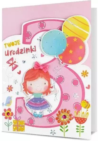 KARTKA URODZINOWAKartka w kolorze biało-różowymozdobiona uśmiechniętą dziewczynkąpośród kwiatków, baloników i prezentów,wraz z napisem "Twoje 3 urodzinki",życzeniami w środkuoraz dopasowaną kolorystycznie kopertądoskonale się sprawdziz okazji trzecich urodzin!SPECYFIKACJA:Okazja: UrodzinyWymiary: …