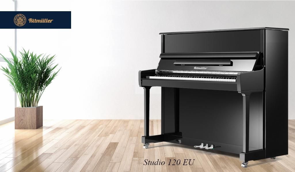 pianino Ritmuller Studio 120 EU kolor: czarny połysk wykończenie: chromowane pełny opis pianina Studio 120 EU dostępny jest na stronie pianina.pl: https://pianina.pl/pianino-ritmuller-studio-120-eu