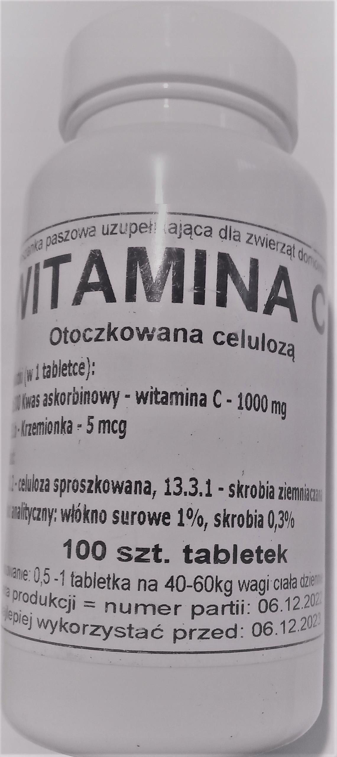 Witamina C - Otoczkowana Celulozą - 100 Tabletek po 1000 mg Zapewnij swojemu zwierzęciu najwyższą jakość suplementacji dzięki mikrokapsułkowej witaminie C o przedłużonym uwalnianiu. Idealna mieszanka paszowa uzupełniająca dla zwierząt domowych, która łączy skuteczność i bezpieczeństwo. Najważniejsze cechy produktu Mikrokapsułkowa witamina C – formuła o przedłużonym uwalnianiu, która zaczyna działać dopiero w jelicie, minimalizując ryzyko podrażnień żołądka. Etylocelulozowa otoczka – gwarantuje maksymalną absorpcję (99%) i pozwala na stosowanie wyższych dawek bez ryzyka zaburzeń trawiennych. Lewoskrętna witamina C (kwas L-askorbinowy) – naturalna i efektywna forma wspierająca odporność i zdrowie organizmu. Skład w jednej tabletce Witamina C – Kwas askorbinowy (1000 mg) Krzemionka (4 mg) Włókno surowe (1%) Skrobia ziemniaczana (0,3%) Dawkowanie Stosować 0,5-1 tabletki dziennie na każde 40-60 kg masy ciała. Dzięki formie mikrokapsułkowej tabletki można dzielić, co pozwala precyzyjnie dostosować dawkę do wagi zwierzęcia. Dlaczego warto wybrać ten produkt? Bezpieczeństwo i komfort – brak ryzyka podrażnień żołądka dzięki mikrokapsułkowej postaci witaminy. Wydajność i wygoda – opakowanie zawiera 100 tabletek po 1000 mg każda, co zapewnia długotrwałe stosowanie. Uniwersalność – odpowiednia dla zwierząt domowych, takich jak psy i koty, w celu wsparcia ich odporności i ogólnego zdrowia. Unikalna formuła otoczkowania Witamina C w postaci mikrokapsułkowej uwalnia się dopiero w jelicie, dzięki czemu jest delikatna dla układu trawiennego i w pełni wchłanialna. Technologia ta umożliwia stosowanie wyższych dawek witaminy C, co czyni produkt wyjątkowym na rynku suplementów dla zwierząt. Zamów już dziś Witaminę C - Otoczkowaną Celulozą i zapewnij swojemu pupilowi wsparcie, jakiego potrzebuje!