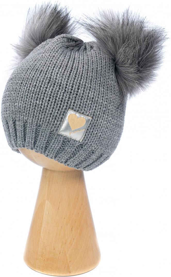 Miła i delikatna czapka dziewczęca została wykonana z wysokiej jakości akrylu. Posiada dwa futrzane pompony, które dodają uroku całej czapce oraz ciekawą aplikację. Czapeczka idealnie sprawdzi się w okresie zimowym. Skład: 100% akryl Sugerowany wiek: 3-5 lat. Obwód głowy: 50-52 cm.