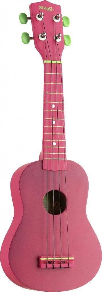 NOWE Ukulele sopranowe + POKROWIEC Stagg US-LIPS Ukulele sopranowe firmy Stagg, to prawdziwa gratka dla najmłodszych ukulelistów. Wspaniałe kolory zachęcają dzieciaki do nauki i zabawy. Długość całkowita - 540 mm. Menzura - 349 mm. Głębokość korpusu - 54 mm. Szerokość (max) - 165 mm. Progi - 12, mosiężne. Struny - nylonowe. Pokrowiec w komplecie. Wykończenie - różowe. Najpopularniejszy strój: gCEA