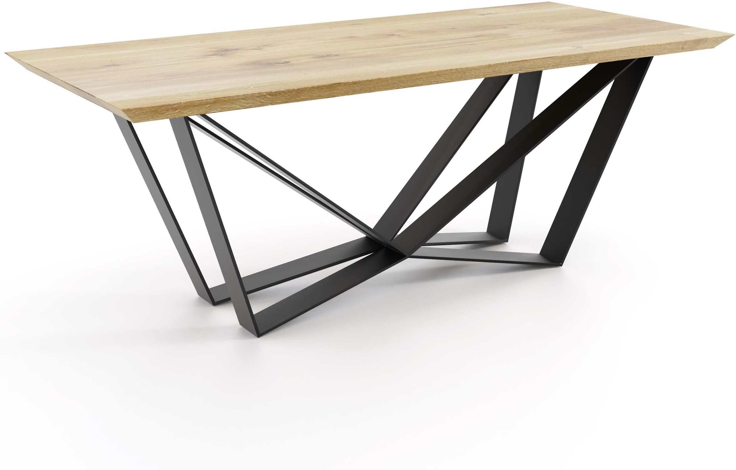Stół z litego drewna Edder 80 cm x 160cm Unikalny design, szlachetna forma oraz solidna i ciekawa pod względem wizualnym noga decydują o wyjątkowości tego stołu do jadalni, jak do kuchni. Linie podstawy stołowej utrzymane w geometrycznej prostocie podkreślają urok i szlachetność blatu z naturalnego drewna. Konstrukcja nogi stołowej, podobnie jak i blat, została wykonana ręcznie, co zapewnia jej jakość oraz stabilność. Fantazyjna stopa sprawia, że produkt jest wyrazisty i jedyny w swoim rodzaju, również za sprawą metalowej nogi, na której zdaje się balansować drewniany blat stołu. PRODUKCJA RĘCZNA Produkt wykonany w 100% ręcznie, tradycja i stolarskie rzemiosło w najlepszym wydaniu. BEZPIECZEŃSTWO UŻYTKOWANIA Zabezpieczenie produktów drewnianych naturalnym olejem lub lakierem o wysokiej odporności na czynniki zewnętrzne. LITE DREWNO Wykonany w całości z naturalnego litego drewna, ciepłego, unikatowego i przyjemnego w dotyku. INDYWIDUALNE ZAMÓWIENIE Każdy produkt jest oryginałem, każdy jest niepowtarzalny i dopasowany do wymogów klienta. Szczegóły : Wymiary: 80x160 cm z blatem dębowym, lakierowany, blat FOLD-delikatnie ścięta krawędź Termin realizacji: 6 tygodni Towar wykonany na zamówienie, według specyfikacji przekazanej przez konsumenta i nie podlega zwrotowi.