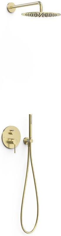 Parametry techniczne: • Typ: Zestaw prysznicowy podtynkowy • Kolekcja: Study Tres • Kolor: Złoty Cava • Technologia: PBT® – trwała, odporna powłoka • Korpus podtynkowy: W zestawie • Typ przełącznika: Ceramiczny, 2-drożny • Ramię: Naścienne, długość 400 mm • Deszczownica: Stal nierdzewna, Ø300 mm, …