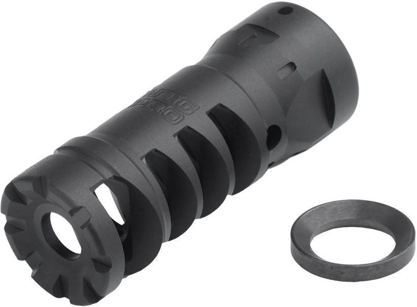 UTG PRO AR15 Stubby Muzzle Brake to sprawdzony hamulec wylotowy do karabinka AR-15 .223/5,56 mm, który skutecznie ogranicza odrzut i podrzut broni. Urządzenie w wersji skróconej. Hamulec wylotowy UTG PRO TLUMD02 - urządzenie wylotowe do karabinka AR15 1/2"X28 UNEF Hamulec UTG PRO TLUMD01 ma zwartą konstrukcję ze stali nierdzewnej, w której zastosowano 6 bocznych szczelin odpowiedzialnych na wydajne rozpraszania gazów prochowych. Urządzenie wylotowe można zamontować na dowolnej broni .223/5.56 mm z gwintem 1/2"X28 UNEF. UTG PRO TLUMD02 efektywnie ogranicza odrzut i podrzut broni, co pozwala na lepszą kontrolę karabinka, wpływając tym samym na celność i powtarzalność strzałów oraz komfort obsługi broni. W zestawie podkładka kontrująca typu crush-washer. Cechy UTG PRO AR15 Stubby Muzzle Brake: Pełnowymiarowy hamulec wylotowy stubby do montażu na karabinkach AR15 .223/5,56 mm, zwarta konstrukcja ze stali nierdzewnej wykończonej techniką azotowania (Black Nitride), pasuje na gwint 1/2"X28 UNEF, fabrycznie nawiercony otwór pod kołek stopujacy, rozprasza gazy prochowe na boki, ogranicza odrzut i podrzut broni, w zestawie podkładka Crush.