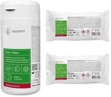 Opinie Zestaw produktów Medisept - Velox Wipes, alkoholowe chusteczki do mycia i dezynfekcji powierzchni - puszka i 2 wkłady, 300 szt. Bukowno