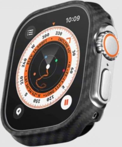 Pitaka Air case, black/grey - A protective and stylish aramid fiber case for Apple Watch. - Seamlessly fits original Apple Watch straps - Crafted using aerospace-grade aramid fiber - 600D aramid fiber's delicate weave makes it difficult to produce and is reserved exclusively for Pitaka's premium luxury products. 600D has an extremely smooth-textured surface that is soft to the touch, ensuring all-day comfort against your skin. - Lightweight yet durable - Easy access to buttons - Smooth-textured surface - The case is made using premium aerospace-grade aramid fiber that is lightweight, scratch-resistant, and highly durable. - Precisely cut for a perfect fit with easy access to all controls. - No cellular, Wi-Fi or GPS interference. - Compatible with all charging accessories and bands. Package includes: case