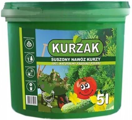Kurzak - suszony naturalny nawóz kurzy 5l wiadro Kurzak naturalny nawóz - dostarcza do gleby niezbędnych składników mineralnych oraz w znacznym stopniu ułatwia rozwój prawidłowej mikroflory. Produkt można stosować bezpośrednio w formie sypkiej oraz po dodaniu do kompostu w celu wzbogacenia jego składu, a także w formie wodnego roztworu. Kurzak posiada podobne właściwości jak obornik bydlęcy, jednak jest o wiele bardziej skoncentrowany, dlatego nigdy nie należy przekraczać zalecanych dawek przez producenta. Możemy w łatwy sposób przenawozić uprawiane rośliny, a w najgorszym wypadku przypalić je. Kurzak posiada długotrwałe działanie. Pamiętajmy, że nie wszystkie rośliny lubią uprawę w glebie po świeżo nawiezionym produkcie. Zwłaszcza podczas uprawy warzyw należy pamiętać o dokładnym układaniu płodozmianu. Zalety 100% naturalny produkt w znacznym stopniu wzbogaca uprawianą glebę w niezbędne składniki odżywcze poprawia strukturę wodno-powietrzną podłoża posiada długo trwałe działanie. Idealnie nadaje się do uprawy roślin warzywniczych, sadowniczych, rolnych. Można nawozić nim wszystkie rośliny ozdobne: trawy, krzewy, kwiaty doniczkowe.