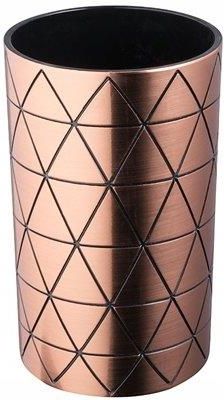 Kubek kosmetyczny Star miedziany Elegancki kubek kosmetyczny Star, który ze względu na designerski wygląd wpasuje się do każdej łazienki i będzie stanowił jej ważny element wyposażenia. Kubek posiada miedziany kolor i ciekawy, oryginalny wzór, dzięki któremu wpasuje się do nowoczesnej przestrzeni domowej czy publicznej łazienki. Oprócz walorów typowo wizualnych jest również bardzo wytrzymały, co uzyskano dzięki wykorzystaniu w produkcji odpowiednio wyselekcjonowanych materiałów, a do tego funkcjonalny – będzie znakomicie służył różnego rodzaju akcesoriom i preparatom. Parametry Marka: Bisk Seria: Star Kolor dominujący: Miedziany Wysokość: 12 cm Średnica: 7 cm