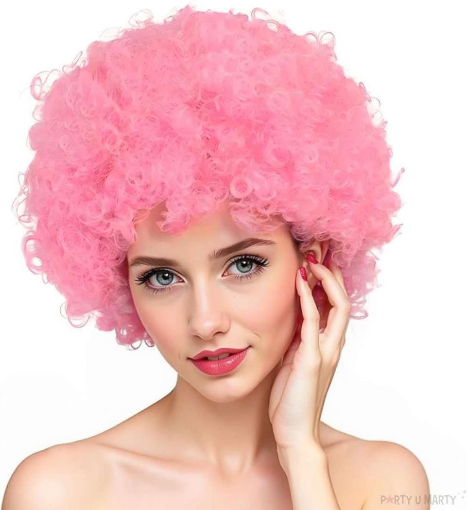 Partydeco Peruka Afro Jasny Róż Busko-Zdrój
