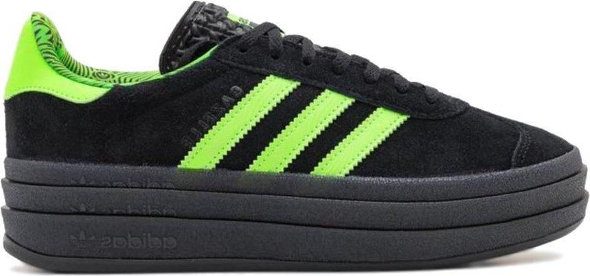 Buty sportowe damskie sneakersy trampki BUTY GAZELLE BOLD JI1339 r. 37 1/3 długość wkładki 23,5 cm Nowoczesne buty w tradycyjnym stylu. Ten model Gazelle Bold zaczyna się od czarnej zamszowej cholewki. Skórzane paski Three Stripes oraz zapiętki mają kontrastujący, fluorescencyjnie zielony kolor – …