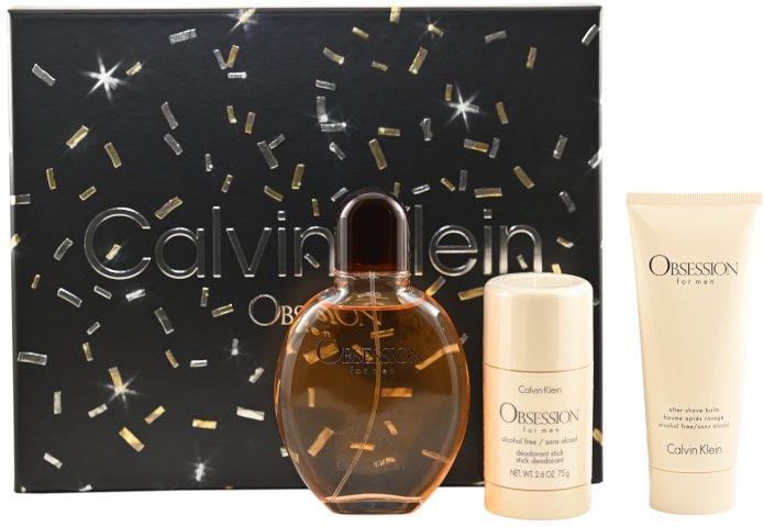 Zestaw upominkowy dla mężczyzn Calvin Klein Obsession (Woda toaletowa 125 ml + Balsam po goleniu 100 ml + Dezodorant w kulce 75 g)Zestaw prezentowy Calvin Klein Obsession to doskonały wybór dla mężczyzny ceniącego wyrazisty i ponadczasowy styl. Woda toaletowa Obsession Men zachwyca pikantnymi nutami przypraw, które łączą się z aromatycznymi akordami ziół, owoców i żywic, tworząc zmysłową kompozycję pełną charakteru. To zapach, który świetnie sprawdzi się przy specjalnych okazjach, podkreślając p
