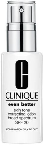 Clinique Even Better Skin Tone Correcting Lotion SPF 20 Pojemność: 50ml emulsja do twarzy Kosmetyki/ damskie Produkt nowy, zapakowany fabrycznie Clinique Even Better Skin Tone Correcting Lotion SPF 20 to nawilżająca emulsja do twarzy przeznaczona dla cery z problemem nierównomiernego kolorytu lub hiperpigmentacji. Rozjaśnia przebarwienia i zapobiega powstawaniu nowych. Zawiera filtr SPF 20. Beztłuszczowa. Do skóry mieszanej w stronę tłustej i tłustej. Do codziennego stosowania.