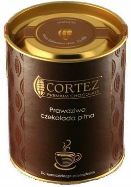 CZEKOLADA PITNA MLECZNA 200G Mleczna czekolada, która najlepiej smakuje na gorąco, tworząc wyśmienite połączenie z mlekiem i śmietanką. Wysokiej jakości czekolada zawierająca 33,6% kakao. Łatwa w przygotowaniu. Szybko rozgrzeje, nawet w najzimniejsze dni oraz doda sporą porcję energii. Praktyczna postać czekolady: dropsy, ułatwia dozowanie i gwarantuje wygodę przyrządzania napoju. 200 g czekolady to 6 filiżanek prawdziwej pitnej czekolady o śmietankowym smaku. Czekolada do picia marki Cortez to przede wszystkim naturalne składniki, odpowiednia konsystencja i oczywiście wyborny, aksamitny smak. Otrzymany z nich napój jest niezwykle aromatyczny i naturalnie gęsty. Przepis przygotowania czekolady do picia 400 ml mleka (3,2%) i 200 ml śmietany (30-36%) wlej do garnka, dodaj całą zawartość opakowania czekolady do picia (200g). Doprowadź do wrzenia i gotuj 3 min, ciągle mieszając, aby nie doprowadzić do przypalenia. Skład czekolada mleczna 98% (cukier, tłuszcz kakaowy, mleko pełne w proszku, miazga kakaowa, emulgator: lecytyna sojowa, naturalny aromat waniliowy), przyprawa do piernika mielona 2% (cynamon 33%, imbir 20%, goździki 12%, skórka pomarańczy 10%, anyż gwiazdka 10%, gałka muszkatołowa 5%, ziele angielskie 5%, kardamon 5%). Masa kakaowa w czekoladzie mlecznej min. 33,6%. Produkt naturalny. Nie zawiera skrobi i innych zagęstników. Masa netto 200g Wyprodukowano w Polsce Wartość odżywcza w 100 g Wartość energetyczna -2356kJ/563kcal Tłuszcze - 36g w tym kwasy tłuszczowe nasycone - 22g Węglowodany - 51g w tym cukry - 50g Błonnik - 2,1g Białko - 7g Sól - 0,21g